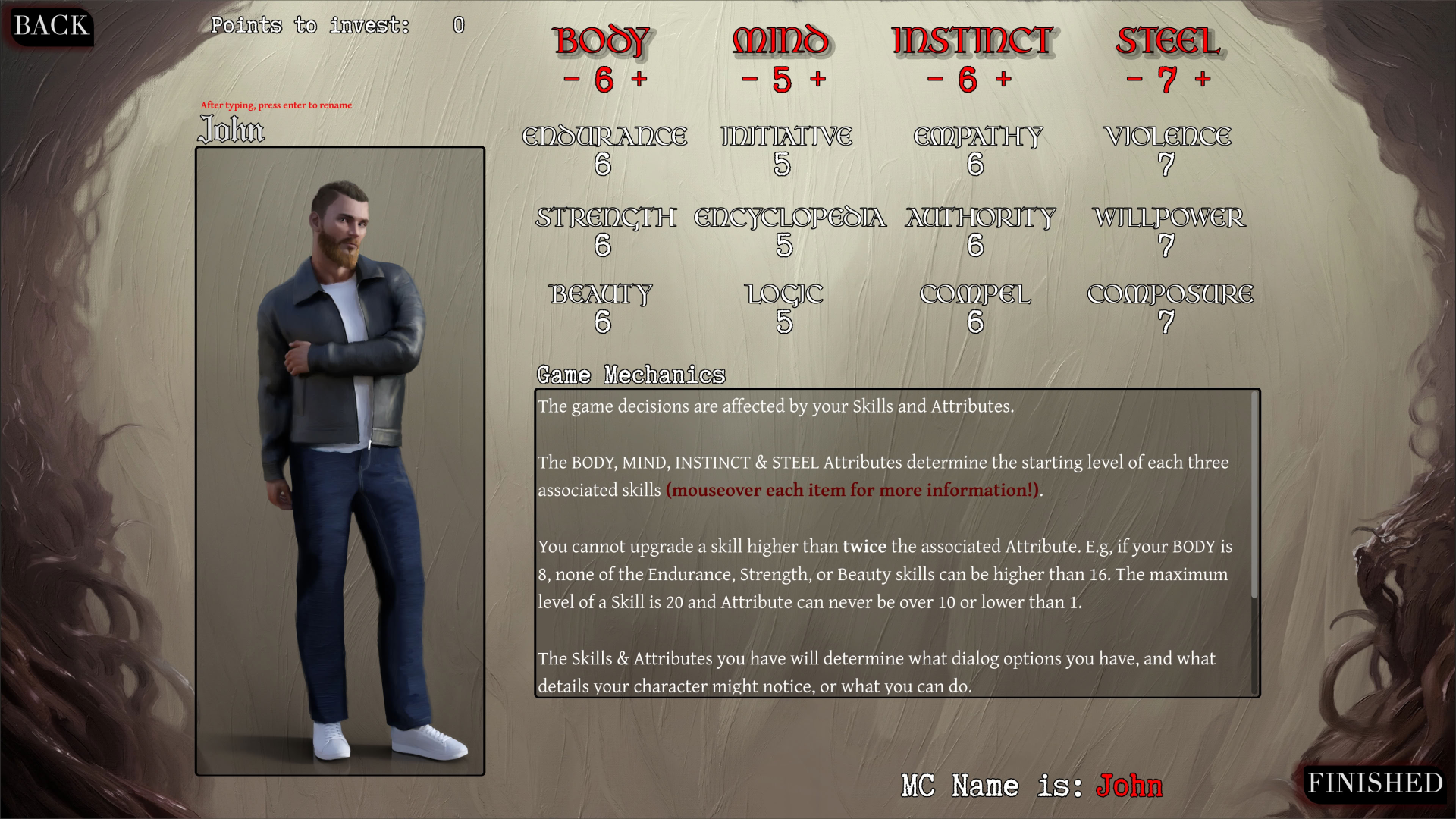 Unfortunate Adventure is a sandbox harem game with frequent updates, under heavy development and a distinctive art style. It is an adult Visual Novel with light RPG elements. The RPG elements are not plot relevant, and there is no grinding for stats. The stats merely affect the flavor of the text and narrative.